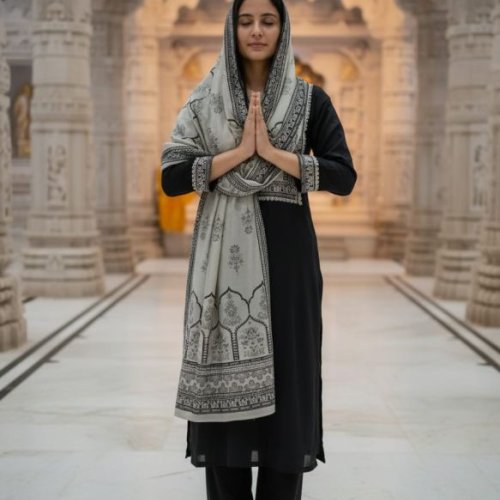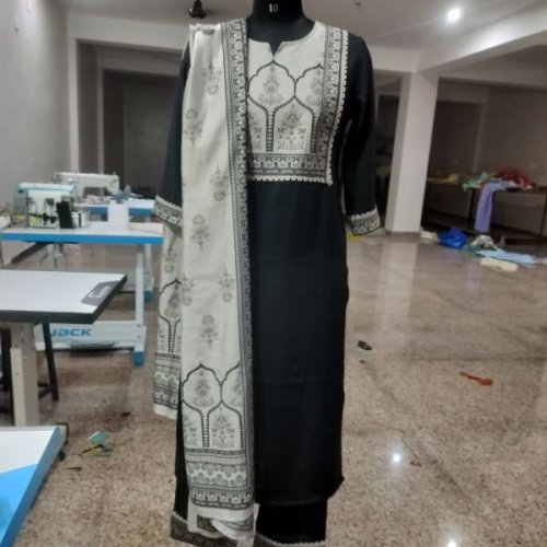 Cotton Black & White Straight Kurta Set